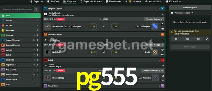 O pg555 oferece uma grande seleção de opções de apostas em e-sports com probabilidades competitivas